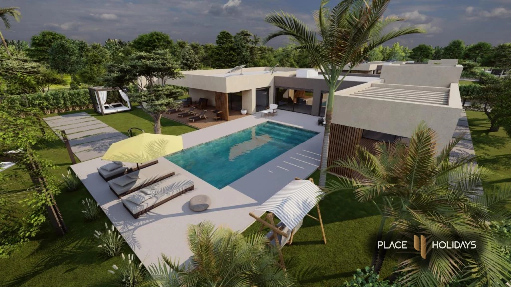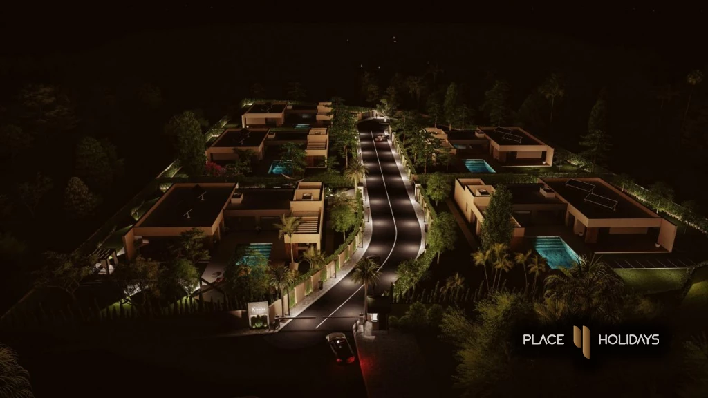 Une résidence fermée composée de 5 villas isolées, 4 Façades de 370 m² habitable sur une superficie de 1600 à 2000 m² de terrain avec une très belle vue sur L’atlas et situé à 15 Km du centre-ville de Marrakech, Route de l’Ourika.