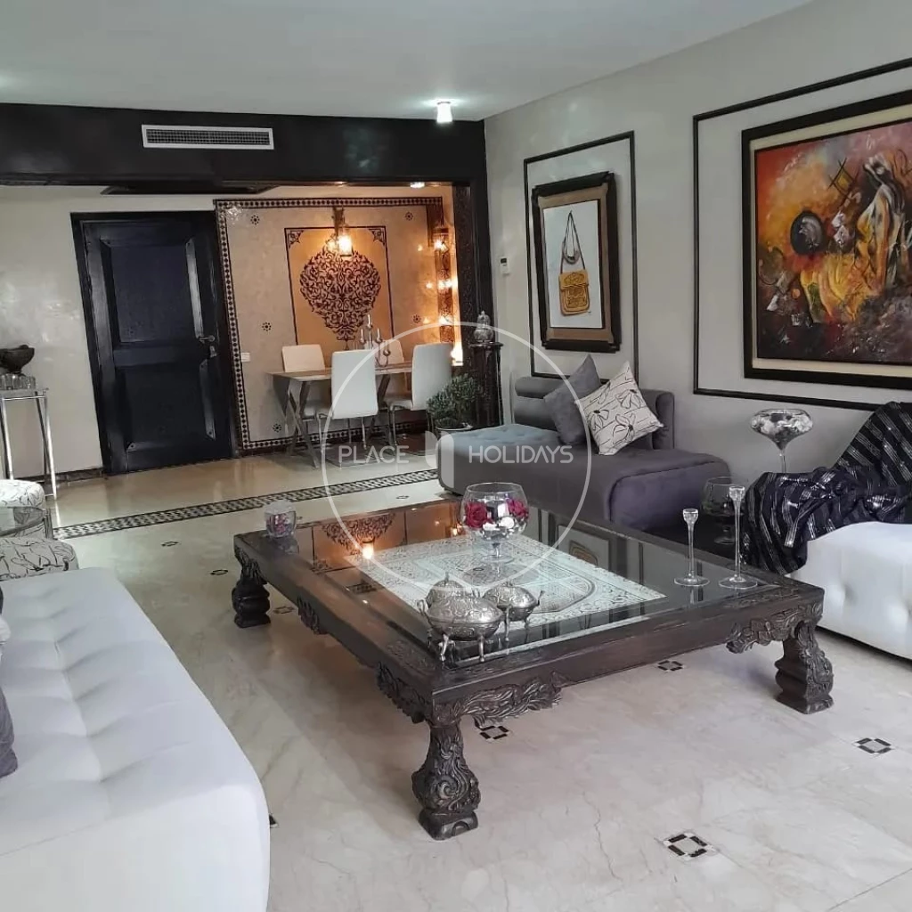 L'emplacement de l'appartement dans le quartier prisé de l'Hivernage à Marrakech est un atout majeur. Vous serez à proximité immédiate du Menara Mall, ce qui vous offrira un accès facile à une variété de boutiques, de restaurants et d'options de divertissement.